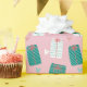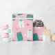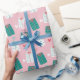 Papel de enrolamento branco-branco moderno, cor-de-rosa, com presentes brancos e lacrimejantes. Um papel de embrulho festivo e divertido para os presentes de férias.