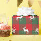 Xadrez de Buffalo Vermelho e Verde com rena branca e silhuetas de cristal de neve.