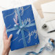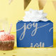 Este elegante e belo papel de Natal azul e prateado contém a palavra "Joy" em um falso roteiro de caligrafia prateada em um fundo azul de Natal, e certamente trará você e seus destinatários para o humor e espírito da época de férias.