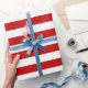 Papel De Presente Natal das Bandas Brancas Vermelhas Modernas