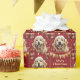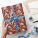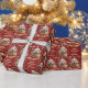 O padrão repetido neste bonito papel de embrulho de Natal é um retrato de um belo Ouro Retriever vestindo um chapéu de Papai Noel vermelho e branco. Junto com as imagens do cão, há um elegante banner vermelho correspondente decorado com canetas de design de ouro no topo. Seu texto personalizado está em ouro pálido em três campos para você personalizar.