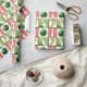 Papel de embrulho de presente com tema de boliche para o Natal. Para personalizar, edite o texto para adicionar o nome do seu boliche favorito.