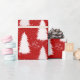 Papel De Presente Natal de Flocos de Neve e Árvores Brancos e Vermel