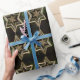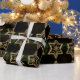 Papel De Presente Natal de Padrão de Estrelas Douradas Verdes Elegan