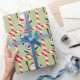 Embrulho de presente criativo de Natal de softbol com jogador de softbol de desenho animado. Para personalizar, edite.