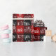 White deixou o texto NEVE de TI com flocos de neve em fundo de xadrez de búfalo vermelho e preto. O texto e a cor podem ser editados.