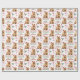 O padrão repetido neste papel de embrulho de Natal inclui uma imagem de um lindo cão Chow Chow vestindo um chapéu vermelho de Papai Noel. O texto vermelho e verde diz MERRY CHRISTMAS" e "Feliz ano novo" com sua assinatura personalizada abaixo. Outras imagens incluídas no padrão incluem flocos de neve decorativos vermelhos e canas doces.