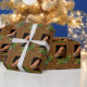 Cavalo bonito com sua tenda decorada com papel de envolvimento do Natal dos amantes do cavalo da folha do feriado