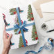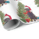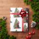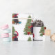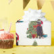 Um labrador de chocolate com árvore de Natal e presentes em fundo branco.