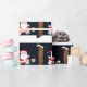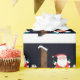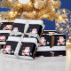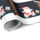 Embalagem de presente de Natal de futebol com a criativa cena natalícia de Papais noeis no telhado.