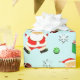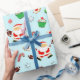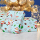 design de Natal com tema de futebol, com Papais noeis jogando futebol rodeados de guloseimas.