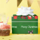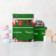 O gato preto e branco novo do smoking senta-se em uma caixa de presente de época natalícia e deseja-se a todos um papel de envolvimento dos amantes do gato do Feliz Natal. O texto pode facilmente ser mudado ou removido