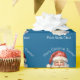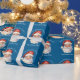 Personalize esta nostálgica do papel azul de embrulho do Papai Noel com seu próprio texto personalizado com o nome de seus filhos em um roteiro branco. Este belo e antigo desenho de chapéu vermelho Papai noel e barba branca são os adesivos perfeitos para os presentes dos seus filhos debaixo da árvore no dia de Natal.