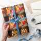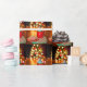 Periquito azul em uma caneca de Natal esperando a chance de roubar Papais noeis biscoitos amantes de pássaros embrulhando papel