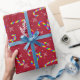 Este papel de embrulho de Natal tem um design de canas doces arco-íris. Há duas diferentes canas doces arco-íris com flocos de neve em fundo vermelho. Você pode fazer o padrão da cana doce maior ou menor neste plástico de presentes. Um presente de Natal divertido para a sua época de férias.