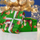 Papel de envolvimento bonito do cavalo com um cavalo bonito que veste um chapéu do papai noel" com suspensão dos ornamento e o cumprimento "Feliz Natal!" através do papel inteiro do papel de embrulho.