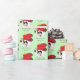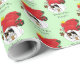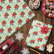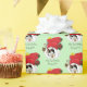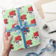 Um gatinho calico giro sentado numa meia de Natal. O gatinho tirou alguns dos seus presentes de Natal, mas o gatinho não estava espiando.