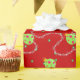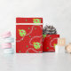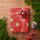 Este papel de embrulho apresenta uma terra natalícia com Enfeites de natal verdes em um fundo de vermelho com diamantes verdes.