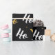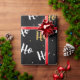 Natal Ho Ho Ho Ho | Holidays Wrapping Paper apresenta um padrão moderno de script "Ho Ho" branco e dourado sobre fundo preto. Projetado por feriados do Evco www.zazzle.com/store/evcoholidays