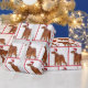 Cachorro irlandês com chapéu de Papai Noel na neve.