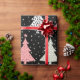 Uma nítida chama moderna em papel de embalagem de Natal, com uma impressão de repetição de árvores de Natal, todas em tons de rosa, cinzas e preto.