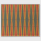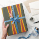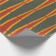 Este papel de embrulho tem um médio de diamantes e triângulos modernos do século XX, a vermelho e verde, num fundo de ouro. Vai parecer grande debaixo da tua árvore.