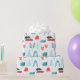 Este design de feriados apresenta ícones azuis e vermelhos do Natal, como mitenes, canecas de chocolate quente, árvore de Natal em um carro, feijão, presentes, árvores e muito mais em um fundo branco.