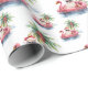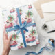 Entre no espírito das festas com este papel de embrulho de Natal único, apresentando um Papai Noel relaxado de óculos escuros descansando em um flutuador de flamingo rosa no oceano. Perfeito para embrulhar presentes com vibrações praianas de Natal, este papel é ideal para qualquer pessoa que viva em lugares tropicais como Flórida, Havaí ou Bahamas, ou para aqueles que simplesmente adoram a estética da praia. A cena inclui uma palmeira decorada com enfeites, ondas suaves do oceano e uma pequena ilha atrás do Papai Noel. O papel tem um charmoso estilo de aquarela rústica. Embrulhe seus presentes com este papel para adicionar um pouco de surfe e areia às suas celebrações de Natal. Papel de Embrulho de Natal Divertido e Festivo com Papai Noel em Flutuador de Flamingo Rosa Tropical de Praia.