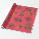 Papel De Presente Natal Natureza Pine Cones e Ramificações Vermelhas
