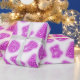 Um padrão sem descontinuidades de elementos de Natal Neon Pink, incluindo árvores de Natal, sinos, estoques e ornamentos sobre fundo branco