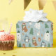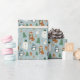 Este papel de embrulho bonito apresenta animais de inverno, chapéus e cachecóis vestidos - você encontrará ursos polares, pinguins, raposas, esquilos e coelhos. Flocos de neve, doces, árvores de Natal e biscoitos de gengibre acrescentam um toque divertido e caprichoso. A cor de fundo é azul acinzentado claro, mas pode ser personalizada para qualquer cor que você quiser. Perfeito para oferecer este feriado!