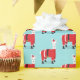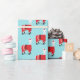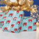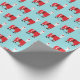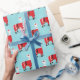 Papel de enrolamento com um padrão de lhamas em fatos e chapéus de Papai noel sobre fundo azul.