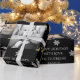 Adicione um toque pessoal ao seu presente. Flocos de neve Dourados e brancos decoram este invólucro de presentes. O nome da família e a foto adicionam um toque pessoal e especial aos presentes de férias. Feliz Férias!