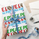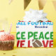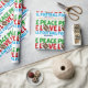 Futebol do Peace Love. Papel de embrulho de Natal azul, bonito e personalizado para um jogador de futebol ou treinador. Este padrão desportivo legal é verde, vermelho e azul com a bola no centro.