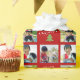 Fundo vermelho com Feliz Natal e uma bela árvore verde de maçã, adicione suas 3 fotos digitais favoritas a este pacote de presente personalizado e exclusivo de fotomontagem de colagem! Crie seu próprio dom personalizado de fotos usando instantâneos da família, retratos infantis ou até imagens.