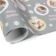 Enrole seus presentes de Natal em estilo! Este papel festivo de embrulho de presente festivo apresenta cor-de-rosa pincelada, cinzas prateadas e armações de ornamento de bolbo redondo cor de ouro com espaços para três (3) fotos diferentes. Flocos de neve brancos e corações de inverno soam a design. A cor de fundo impressa da cinza de pewter pode ser personalizada. A redação do Feliz Natal na escrita moderna também pode ser personalizada. Dica da foto: recorte fotos em forma quadrada antes de carregar.