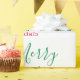A design apresenta um roteiro personalizado do desejo "Feliz Natal!" em verde juntamente com a assinatura do nome da família em vermelho, em um fundo branco. Um belo presente pessoal e tradicional para sua celebração de feriado. Para solicitações ou perguntas especiais, entre em contato com o artista em wafadahdalcreates@gmail.com. © Wafa Y. Dahdal - Todos os direitos reservados.