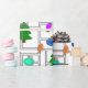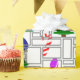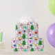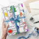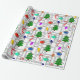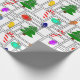 Este papel de embrulho tem uma design geométrica de árvores de Natal, canas doces, luzes e ornamentos com contornos de retângulo de cinza em cima. Como o design, mas quer uma cor diferente? Me mande mensagem.