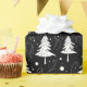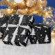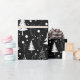 O presente de Natal preto e branco é embrulhado com árvores de Natal abstrato modernas.