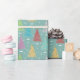Este papel teal de embrulho de Natal com árvores de Natal retrógradas multicoloridas e starburst é um belo presente para iluminar seus presentes de Natal sob sua árvore de Natal nesta temporada. Você pode fazer o padrão nesse papel de empacotamento maior ou menor.
