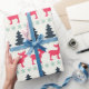 Papel De Presente Natal Rústico no Campo Feriado Alce & Árvore