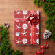 Papel de embrulho de presente de Natal tropical em cor vermelha escura com padrão de estrelas-do-mar, dólares de areia e ornamentos de árvores. Design perfeito, em papel de qualidade, para aqueles que celebram as férias num clima quente.