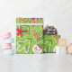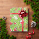 Enrole seus presentes de Natal com este papel de embrulho sazonal com flocos de neve, pinheiros, sinos de Natal, boneco de Natal, rena, vela de Natal e árvore de Natal em fundo verde. Seus presentes ficarão muito alegres debaixo da árvore.