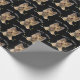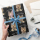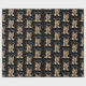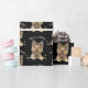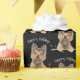Cute Yorkshire terrier em tonalidades prateadas e luzes de férias em fundo preto. A cor de fundo pode ser alterada.