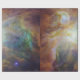 O telescópio espacial e o Hubble de Spitzer mostram a nebulosa de Orion em uma explosão das cores infravermelhas, ultravioletas, e da visível-luz. No centro da nebulosa é um grupo de quatro estrelas monstrously maciças, chamado coletivamente o trapézio. Estas gigantes são aproximadamente 100.000 vezes mais brilhantes do que nosso Sun. Sua comunidade pode ser identificada como o borrão amarelo perto do centro do composto. Crédito: NASA, ESA, T. Megeath (universidade de Toledo) e M. Robberto (STScI)