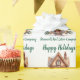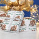 Este papel de embrulho de Natal personalizado para corretor de imóveis tem o nome da sua empresa de imóveis personalizado e a mensagem de Felizes Festas em tipografia verde chic juntamente com uma bela imagem de uma casa no inverno cercada por pinheiros. Papel de presente de Natal profissional para marketing de negócios de imóveis.
