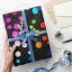 Bolinhas néon brilhantes sobre fundo preto. A cor de fundo pode ser alterada.