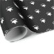 Flocos de neve brancos e pretos modernos e bonitos têm o padrão de papel de embrulho de Natal. Estrelas brancas de neve sobre fundo preto.