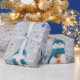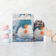 Neve com estrelas cintilantes azuis no céu abstrato. Neve costurada à mão a partir de meia branca e cheia de grão, chapéu ciano escuro de crochê e cachecol, costurando dois botões laranja e olhos colados e boca plástica preta e nariz colado a partir de pérolas vermelhas. *Todas as coisas que você vê nos produtos são feitas à mão, mas você deve saber que consegue uma foto!*