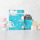 Papel De Presente Neve e Flocos de Neve Azul Branco Moderno Natal